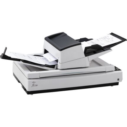Utilizing both a flatbed and 100-sheet automatic document feeder, the fi-7480 Color Duplex Document Scanner from Fujitsu is a versatile