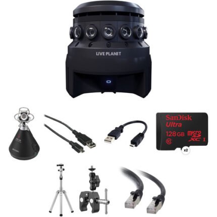 360 3D Spherical VR 16-Lens Camera Internal Real-Time DCI 4K 360° Stitching Zoom H3-VR Audio Recorder with Mic Array 2 x 128GB microSDXC Cards & SD Adapters