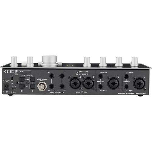 The iD44 is equipped with two Optical input and output connectors, which offer plenty of options for expansion. Supporting both ADAT and S/PDIF, iD44 enables you to add up to 16 mic preamp channels to your setup for larger sessions like tracking a live band. The Audient iD44 ships with a power supply, a standard USB cable, and a USB Type-C cable.