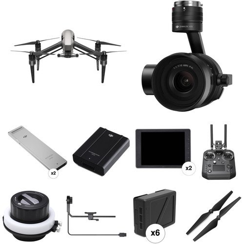 The Inspire 2 Quadcopter Professional Filmmaking Kit from B&H has been designed to give professional photographers and videographers a complete aerial solution in one package. The core of this kit surrounds the pairing of the DJI Inspire 2 quadcopter and Zenmuse X5S gimbal camera. The durable magnesium-aluminum-clad drone can reach speeds up to 58 mph while tracking fast-moving subjects, flying pre-planned routes, and more. Along the way, the Zenmuse gimbal can use a Micro Four Thirds sensor to record up to 5.2K resolution at 30 fps, or up to 4K at 60 fps, in addition to still images at up to 20.8MP.