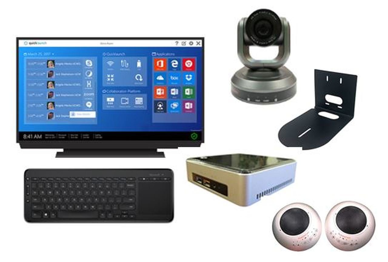 The kit is all tied together with the Quicklaunch PE software. Just as the name entails, you can come into your conference room and quickly launch your applications. Quicklaunch is a highly customizable control interface for “one-touch” meetings. Easily open your application from the menu and start or join your meeting.