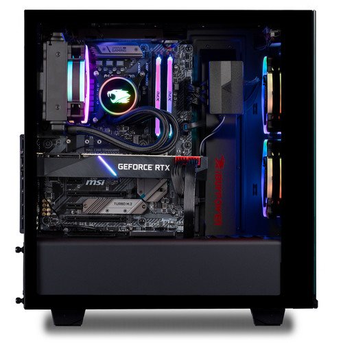 Designed for high-res gaming, the iBUYPOWER Element PRO114A Gaming Desktop Computer provides the power and performance you need, thanks to its 3.9 GHz AMD Ryzen 7 3800X 8-Core processor, 16GB of 2666 MHz DDR4 RAM, and a dedicated NVIDIA GeForce RTX 2080 SUPER graphics card with 8GB of GDDR6 VRAM. Connect to a monitor or an external display via HDMI or DisplayPort. The 1TB HDD provides the storage space needed to save large files while the 480GB SSD allows for faster boot times. Connect to the internet with the Gigabit Ethernet RJ45 LAN jack or go wirelessly with Wi-Fi 5 (802.11ac). The system is housed in an Element black case with a tempered-glass side panel and a 240mm liquid cooling system. A USB keyboard and mouse are included. Windows 10 Home (64-bit) is the installed operating system.