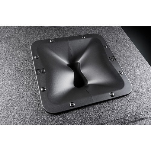 The enclosure is constructed of multi-ply birch coated with JBL’s rugged DuraFlex finish and is heavily braced to maximize low-frequency performance. There are several M-10 threaded points located on the top, sides, bottom, and back of the enclosure allowing for flexible deployment. When mounted flush on a back panel, the JBL 9320 provides a 15° downward firing angle for effective audience coverage.