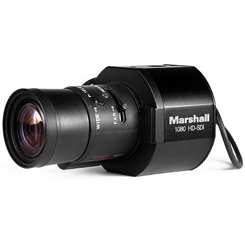 Supporting broadcast-quality Full HD video in a versatile, small form factor package, the Marshall CV365-CGB 2.5MP Compact Genlock 3G-SDI / HDMI Camera is suitable for a wide range of applications including reality TV, sports, racing, houses of worship, and surveillance/security. The camera features a 2.5MP 1/3″ CMOS sensor that supports 1080p, 1080i, and 720p video up to 60 fps over 3G/HD-SDI and HDMI outputs. A CS/C mount lens mount gives you field of view flexibility with support for DC-Auto Iris control on compatible lenses. A LEMO-style I/O port and included breakout cable provides additional connectivity, including RS-485, mic input, power input, and a tri-level genlock sync input and output for multi-camera shoots. The camera can be setup to automatically adjust to the resolution and frame rate of sync source, so long as it is supported by the camera.