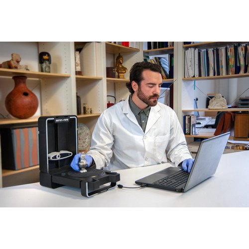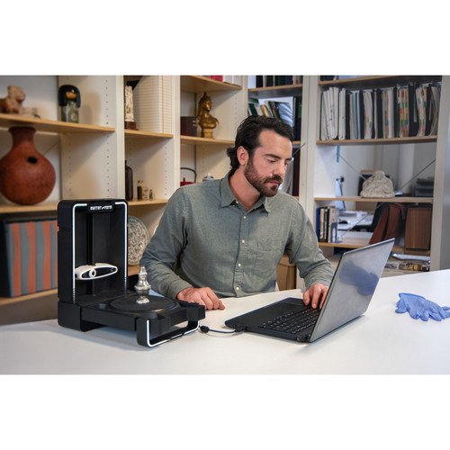 Keep your scanner and workspace neat and clean with an integrated case that protects both the turntable and the camera. Simply fold up the base when not in use. No other protective or storage case needed.