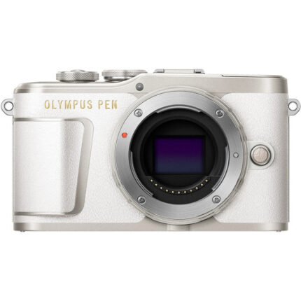 The exterior of the camera body is wrapped in a white leatherette for a traditional feel and the Olympus PEN logo has been foil stamped on the front of the camera body.