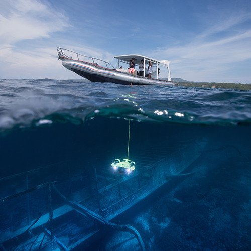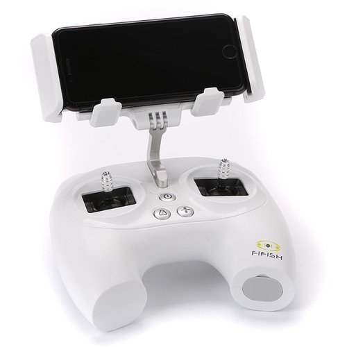 Mount your smartphone on the dual-joystick topside remote controller, connect the 164′ tether, and drive the ROV at speeds up to 3 knots (5′ per second) for up to 4.5 hours on a charge. Its six thrusters provide 6 DOF (degree of freedom) movement so you can climb, dive, and roll, and Qysea’s Posture Lock technology allows you to maintain an angle within 0.1° while moving. The vehicle’s camera features a 1/2.3″ SONY CMOS sensor, an f/2.5 aperture, a 166° field of view, a top ISO rating of 6400, 4K UHD video at 25/30 fps, 1080p video with a frame rate as high as 120 fps, and the ability to shoot in DNG format. The remote-control unit employs gaming console-style joysticks and can record your images to microSD cards up to 32GB or stream your content over Wi-Fi. The free Fifish App enables editing, color restoration, sound track, and instant sharing.