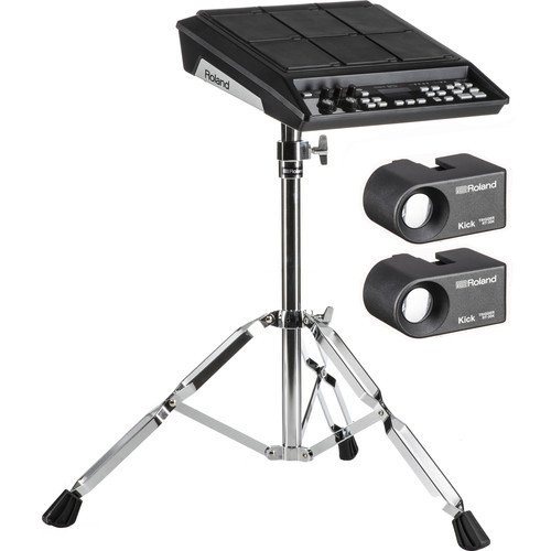 The Roland SPD-SX Sampling Pad, Stand and Drum Triggers Kit includes the Roland SPD-SX sampling pad, a TR-30HR Double Acoustic Drum Trigger, an RT-30K Acoustic Kick Drum Trigger, a PDS-10 Pad Stand for HPD and SPD Series instruments, and two 11.5′ stereo connection cables. The kit can be used to sample, capture, trigger, assign, and play acoustic drum sounds and audio phrases on nine velocity-sensitive drum pads, for home, studio, and stage applications.