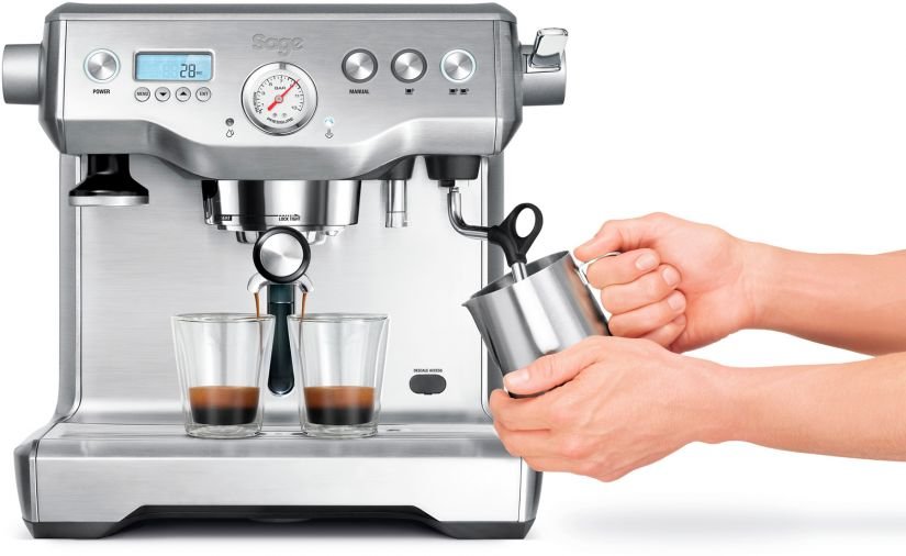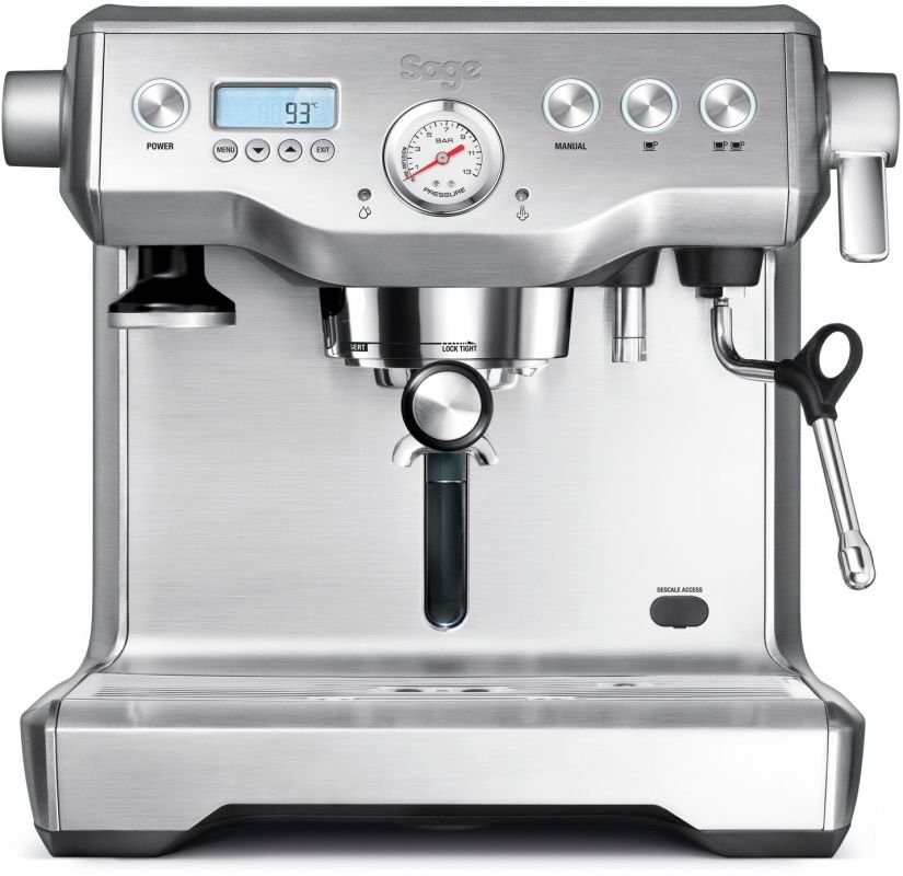 Sage the Dual Boilerâ„¢ espresso coffee maker is for the coffee connoisseur who prefers to control every step in the espresso process. You can extract espresso and texture milk simultaneously, allowing you to capture the delicate aromatics of the espresso in your coffee by having the espresso and milk ready at the same time.