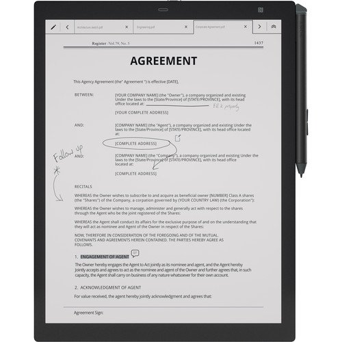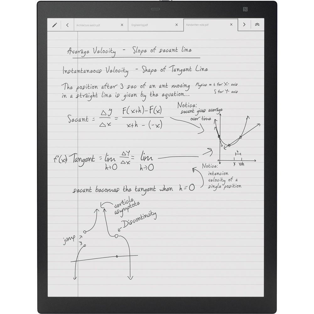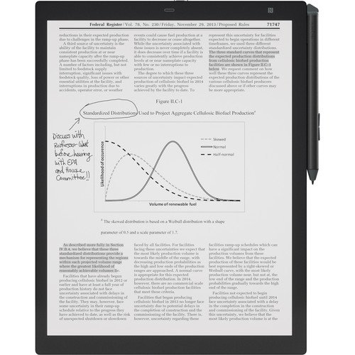 The black Sony 13.3″ 16GB DPT-RP1 Digital Paper System combines the simplicity of reading and writing on real paper with the convenience of digital features, including easy sharing across devices, searchable documents, and secure document encryption. The 13.3″ e-paper display features a 1650 x 2200 resolution and a glare-free screen. You can also use the included stylus to annotate documents, jot down notes, and highlight important sentences.