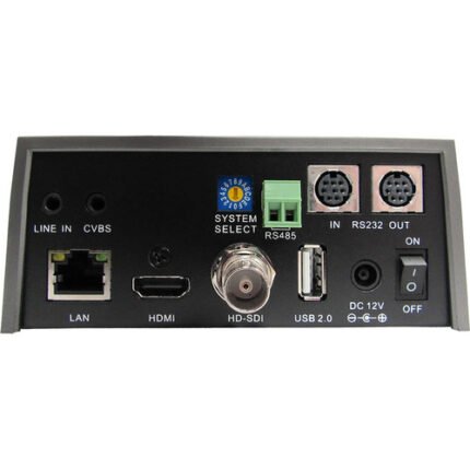 The camera simultaneously outputs HDMI, HDBaseT, 3G-SDI, and IP streaming, so there is no concern about selecting an output port. You can control the camera from a networked computer via the Ethernet port, and an included IR remote provides local control. You can tell at a glance the status of the unit thanks to a built-in LED that changes color to indicate the state of the camera.