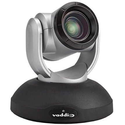 This white RoboSHOT 20 UHD Ultra High Definition PTZ Camera from Vaddio is suitable for use in distance learning, corporate and house of worship. It captures UHD 4K (3840 x 2160) at 30p from a single 1/2.3″-type Exmor R sensor. Featuring a 12x optical zoom, with a 1.67x digital zoom for a 20x total zoom range, the camera has a 74° angle of view at wide, with a 4.8° angle of view when zoomed in all the way.