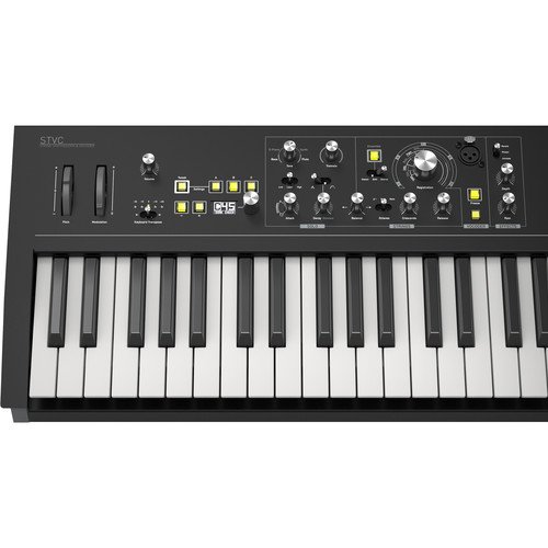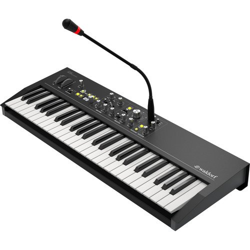 The Waldorf STVC String Synthesizer and Vocoder combines the sound engine of the Streichfett string synthesizer with a power vocoder to provide the highly coveted sounds of the ’70s and ’80s. Several enhancements have been added including an increase polyphony of 16 voices, an XLR microphone input, and a rugged Blofeld-style enclosure with the same 49-note, professional-quality, semi-weighted keyboard with velocity and aftertouch.